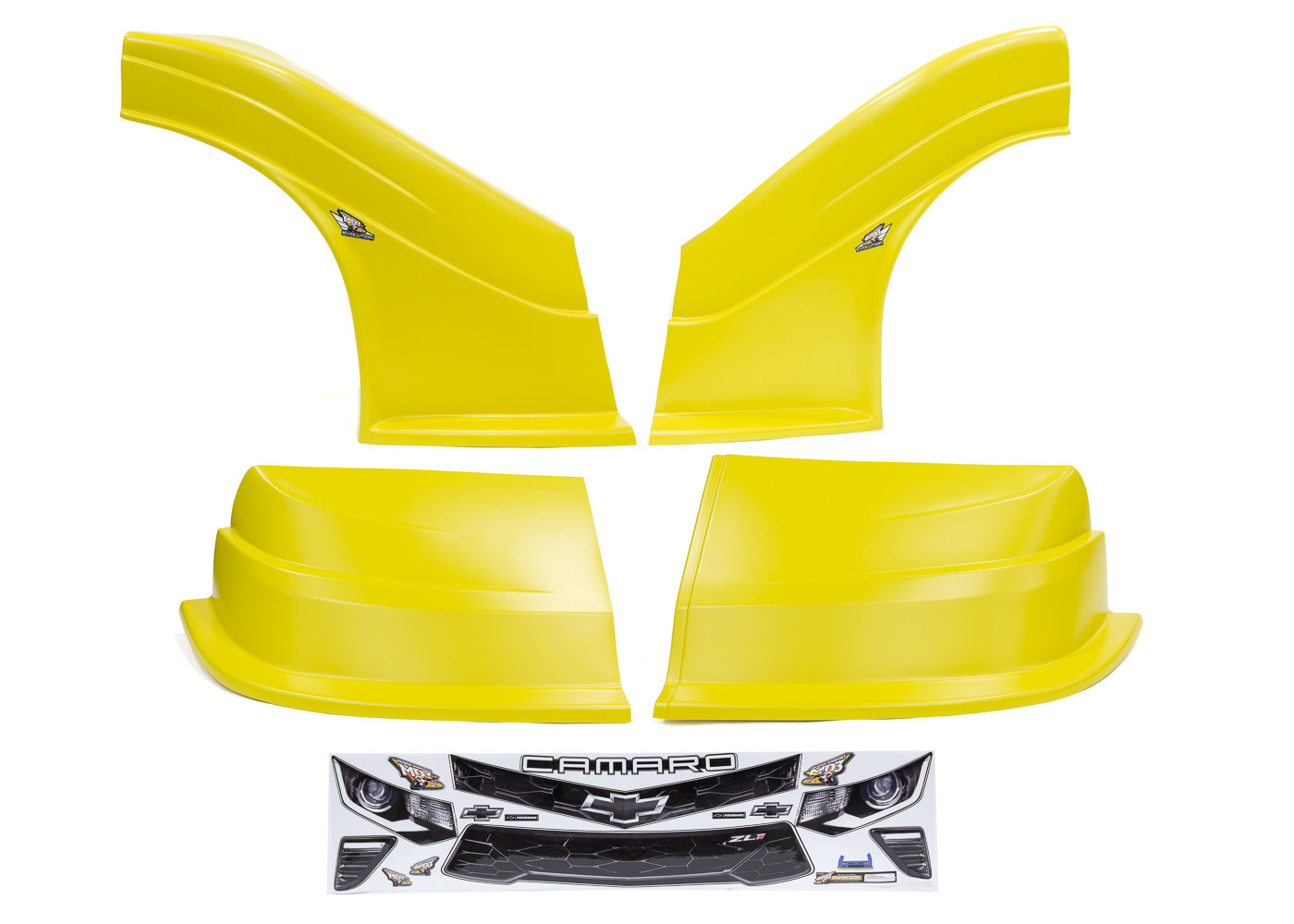 Product Description Nose - MD3 Evolution - Combo - Fenders / Nose / Graphics - Molded Plastic - Passenger Flat Fender - Yellow - Chevy Camaro - Dirt Late Model - Kit
