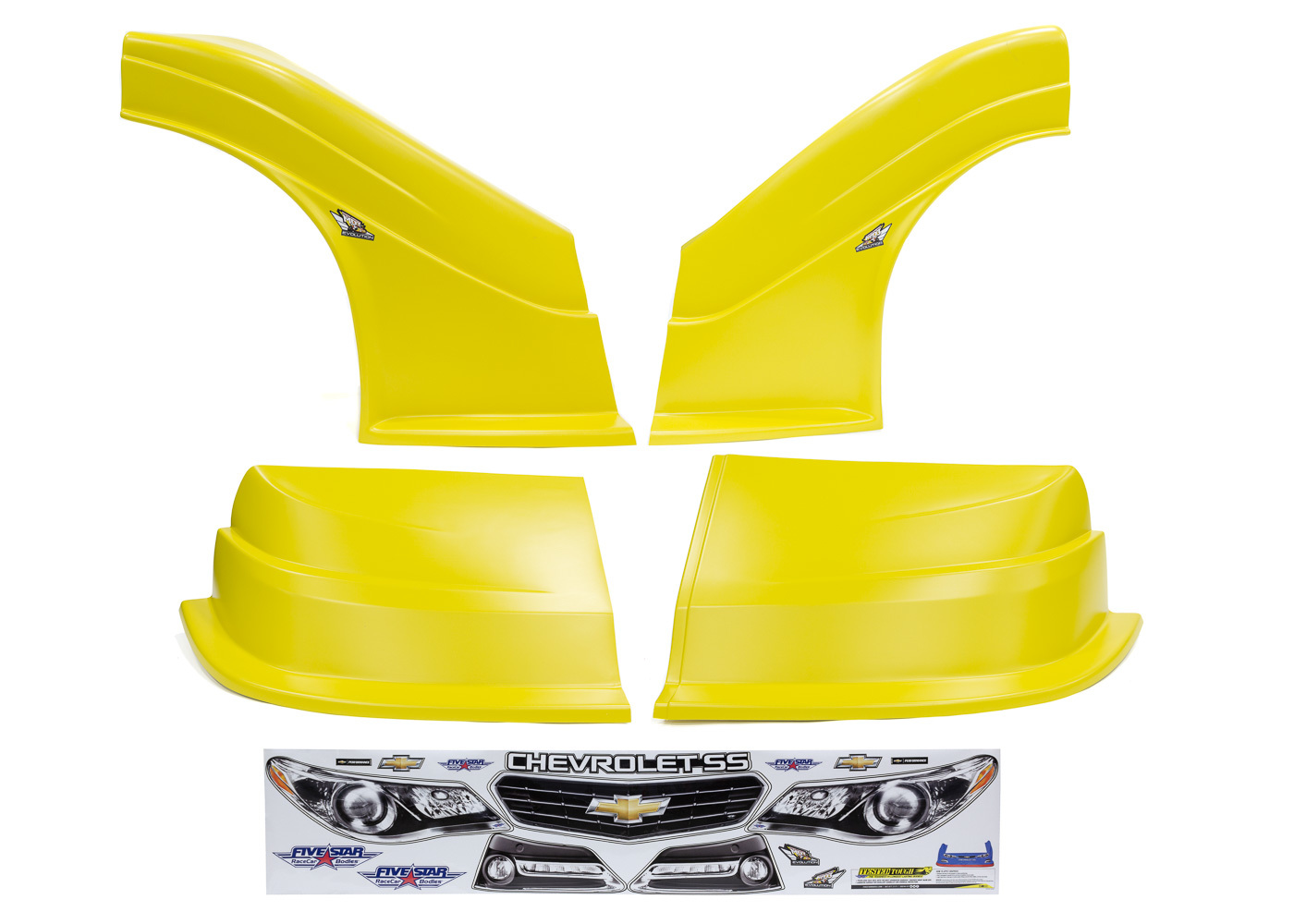 Product Description Nose - MD3 Evolution - Combo - Fenders / Nose / Graphics - Molded Plastic - Passenger Flat Fender - Yellow - Chevy SS - Dirt Late Model - Kit