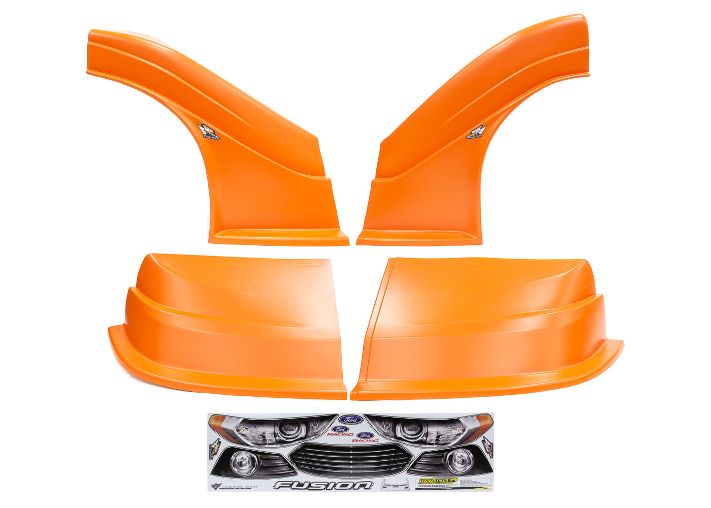 Product Description Nose - MD3 Evolution - Combo - Fenders / Nose / Graphics - Molded Plastic - Passenger Flat Fender - Orange - Ford Fusion - Dirt Late Model - Kit
