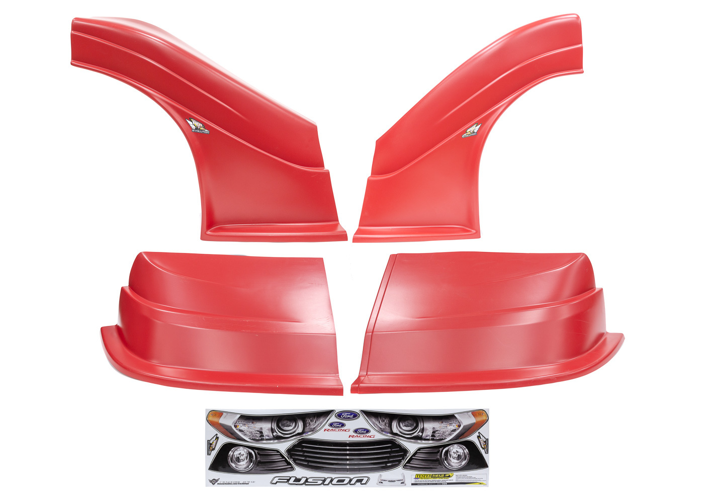 Product Description Nose - MD3 Evolution - Combo - Fenders / Nose / Graphics - Molded Plastic - Passenger Flat Fender - Red - Ford Fusion - Dirt Late Model - Kit